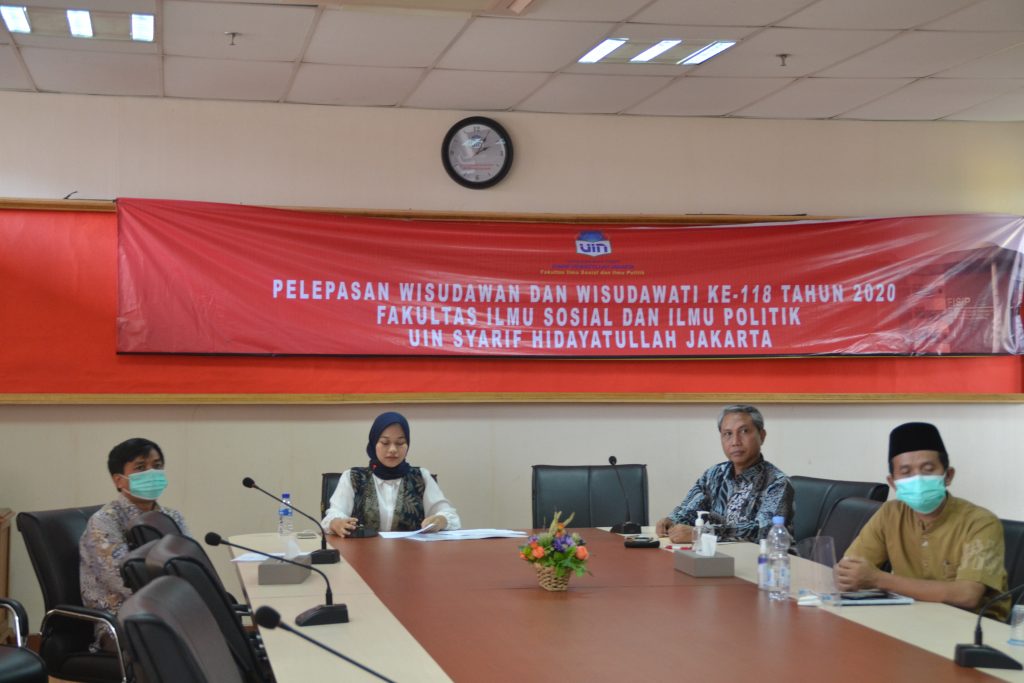 Sebanyak 48 calon wisudawan dan wisudawati Fakultas Ilmu Sosial dan Ilmu Politik (FISIP) Universitas Islam Negeri (UIN) Syarif Hidayatullah Jakarta secara seremonial dilepas oleh Dekan FISIP Dr. Ali Munhanif, M.A., pada Jumat 13 November 2020. Acara yudisium kali ini diadakan melalui tatap muka secara online menggunakan Zoom dikarenakan wabah pandemi Covid-19. Para wisudawan terdiri atas 14 orang dari Program Studi Ilmu Hubungan Internasional, 22 orang dari Program Studi Ilmu Politik dan 12 orang dari Program Studi Sosiologi. Para calon wisudawan dan wisudawati melaksanakan Sidang Terbuka Wisuda yang ke 118 Tahun 2020 pada hari Sabtu, 14 November 2020.