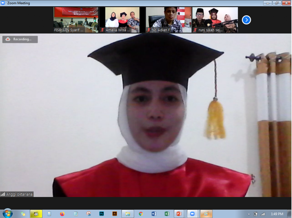 Anggi Oktarina sebagai wisudawan terbaik memberikan sambutan dalam yudisium ini. Ia mengucapkan terima kasih kepada orang tua, dan seluruh sivitas akademik FISIP UIN Jakarta yang sudah mensupport penuh untuk kuliah hingga akhirnya mendapatkan gelar sarjana.